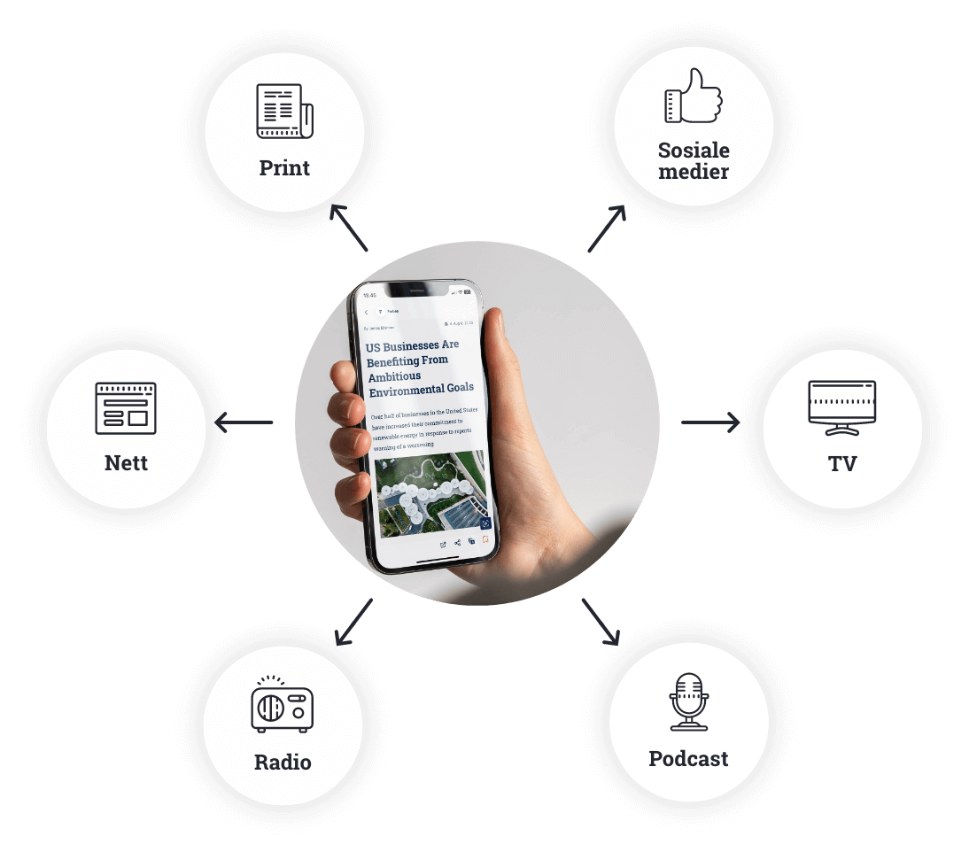Vi tenker bredt for å gi deg den beste dekningen av hele mediebildet. På tvers av print, nett, sosiale medier, radio og TV. Lokalt og globalt.