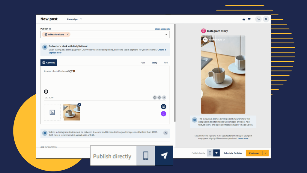 Direkte publisering av Instagram Stories