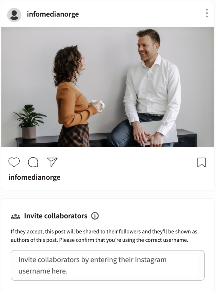 Instagram har lansert en mulighet til å invitere samarbeidspartnere til innleggene dine, og dette er nå også mulig gjennom Hootsuite. Du kan invitere opptil tre samarbeidspartnere til innleggene dine, noe som kan hjelpe deg med å øke rekkevidden og engasjementet – og hvem vil vel ikke det?