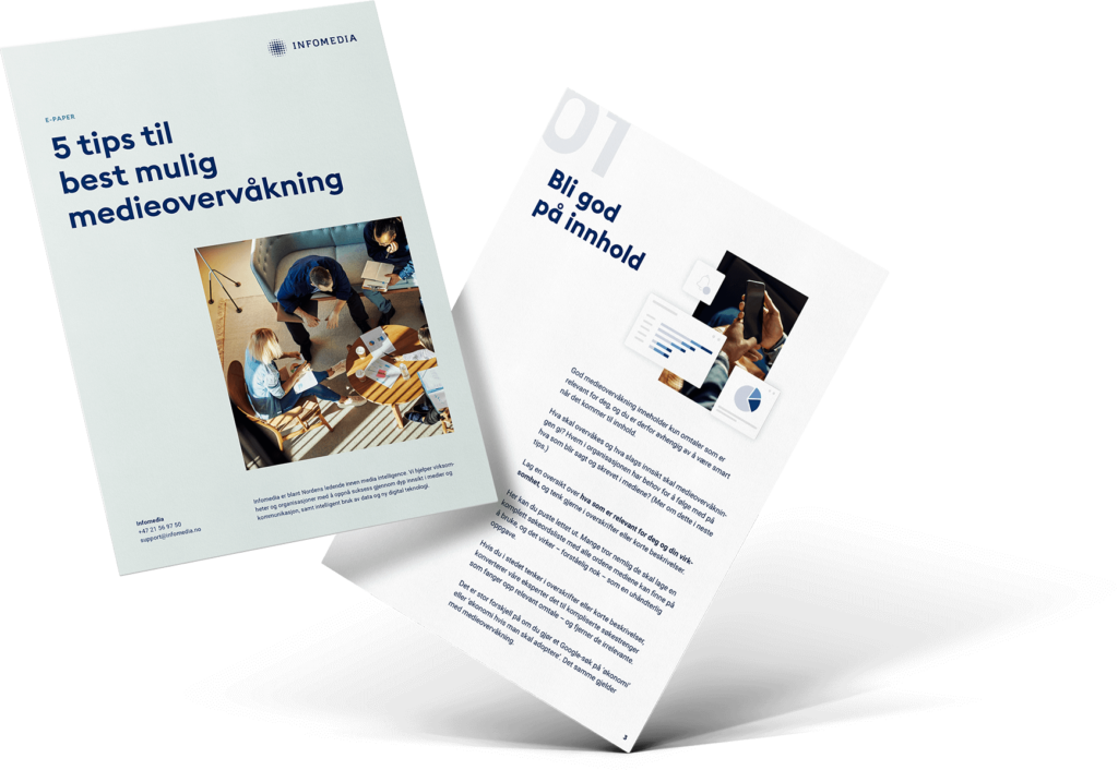 Infomedia tilbyr markedets mest presise dekning av kommunikasjonen og omtalene dine i hele mediebildet. Kontakt oss og få en demo av vår medieovervåking.