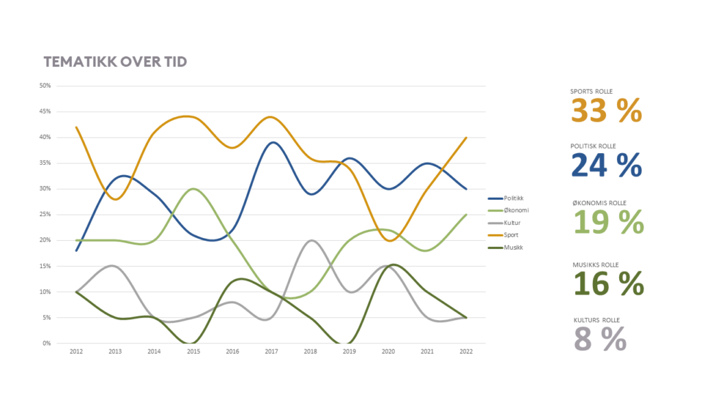 Et dypdykk i tematikken som virksomheten er knyttet opp mot, der vi undersøker endringer over tid og ulikheter mellom mediekanaler.